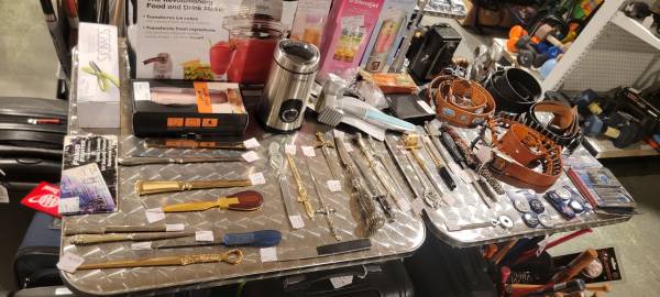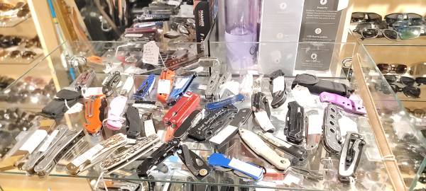 We will have a bunch of pool cue and some golf clubs to put out tomorrow! Sunglasses display is getting larger every week.