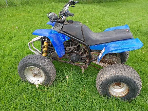 98 Yamaha blaster recent rebuilt top end. Comes with gas tank slip cover, rear skid plate, old seat needs recovered, old handle bars, old cdi box, old tie rods with ends and random bolts nuts. All of which is pictured and has been replaced. Put new CDI box on but original was plugged in wrong was blowing light bulbs so it may still work. Light bulb is replaced high and low beam. Has oil pump delete done and take a mixed gas. 32 :1 recommended for normal riding. Has new seat, new handle bars, new grips, new clutch cable, new motor mount bolts, new rear axel carrier bolts and adjusters, new swing arm bolt, new rear shock bolts, new front shock bolts, plus replacement bolts and front replacement a arm bolts has new engine grommets stator side has plastic oil pump cover off at the moment to show delete. Rear tires and wheels are replaced tires are kenda scorpions. I have done a bunch of work to this quad. Too end was recently replaced does not have many hours on it. Starts on 3rd kick runs great. Doesn't get ridden.